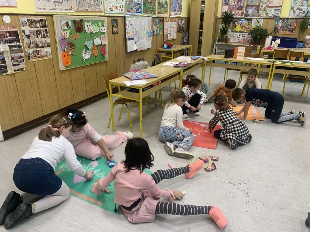 Среда је била дан за омиљену играчку и заједничку причу и игру са њима. Временске (не)прилике су нам онемогућиле цртање кредом, па су асфалт заменили хамери на поду учионица. Заједничким вежбањем и штафетним играма обележен је спортски дан у школском дворишту. Посебну радост донела је акција „Деца деци“ када су ученици размењивали поклоне, али и „Тајни другар доброте“ када су за одабране другаре, током недеље чинили мала, добра дела (цртали и писали поруке, помагали у учењу, делили ужину …) и на прави начин показивали да они знају „шта другарство значи“!